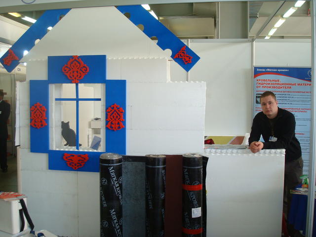 Участие в выставке «Стройиндустрия»- традиция для завода «Мягкая кровля». В этом году на стенде завода была представлена часть Теплого дома из несъемной опалубки. Всю конструкцию дома можно было посмотреть на месте, проконсультироваться со специалистами, ознакомиться с ценами на продукцию. Также были представлены образцы кровли и гидроизоляции: рулонные битумные, модифицированные наплавляемые кровли и рулонные наплавляемые материалы, а также битумы и мастики.