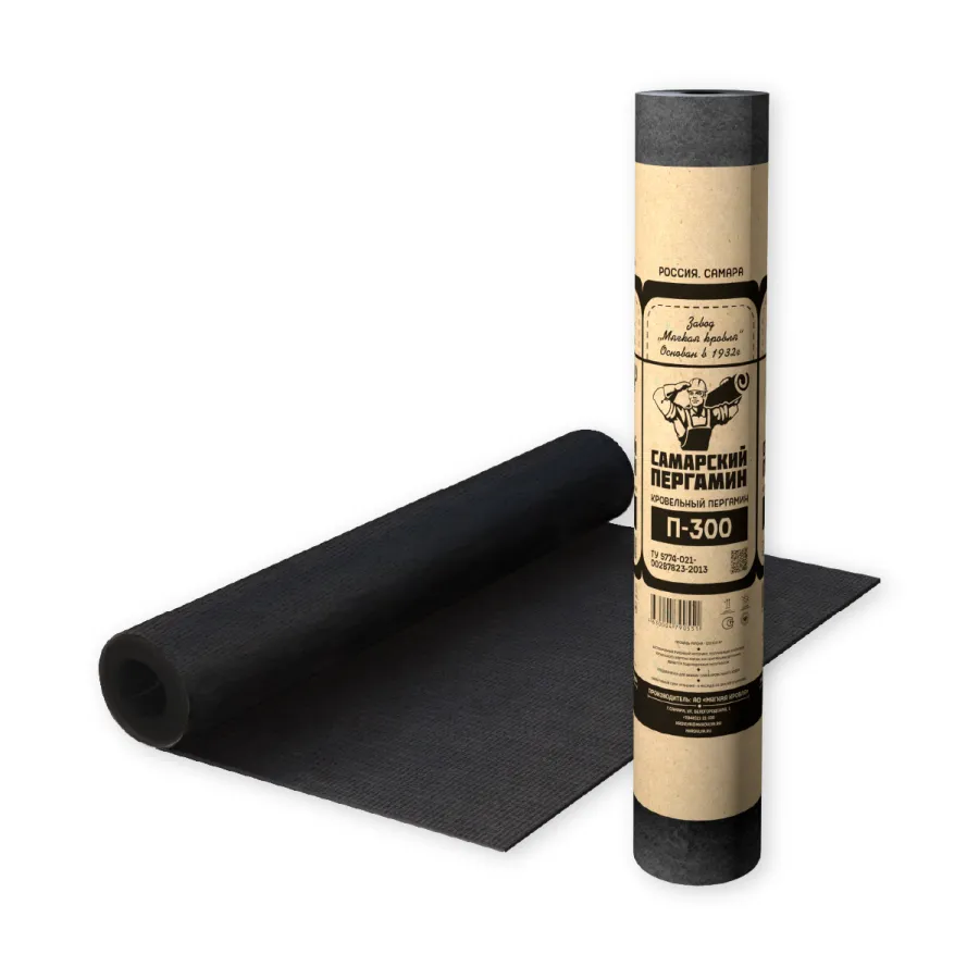 Пергамин П-300 - беспокровный рулонный подкладочный материал.